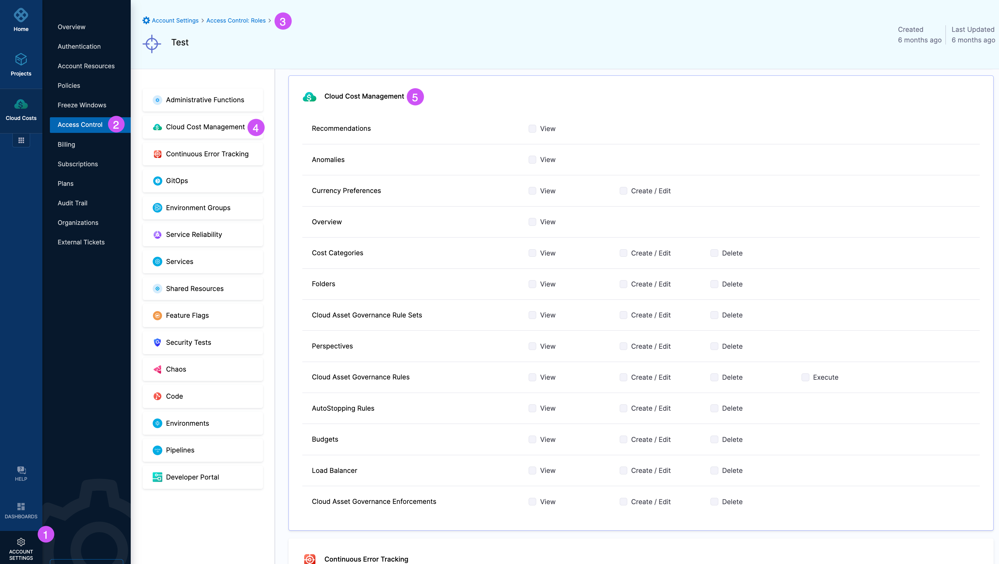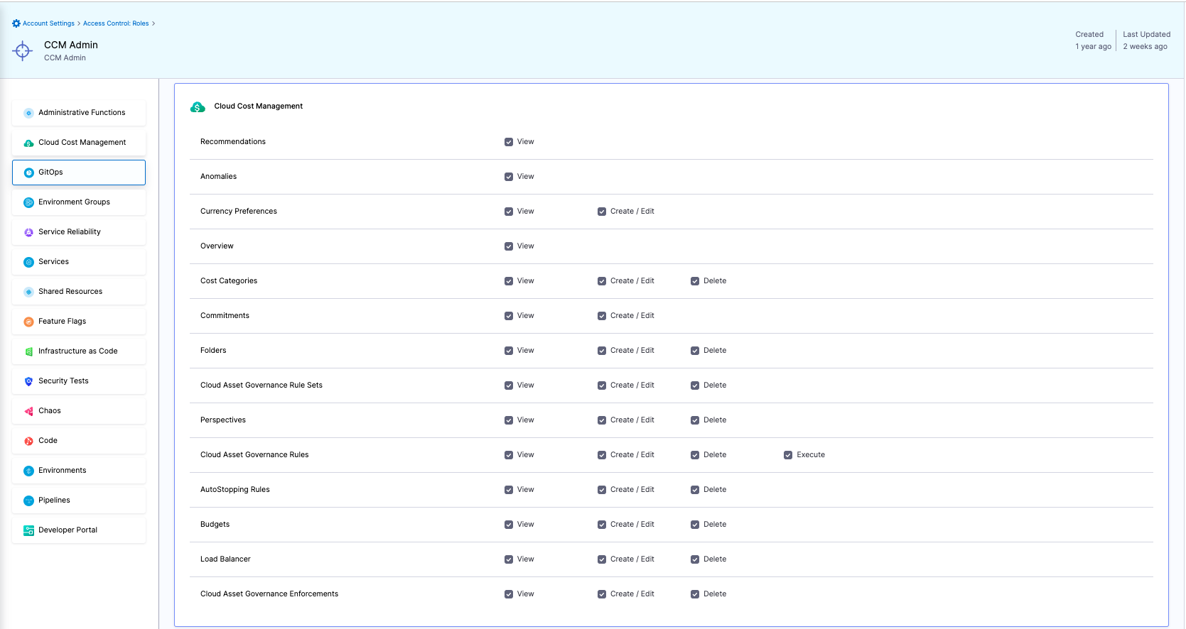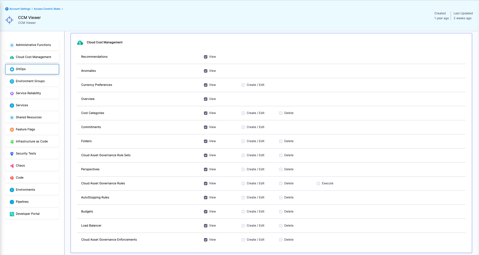 - In the Role, click Cloud Cost Management. The CCM Permissions are displayed.