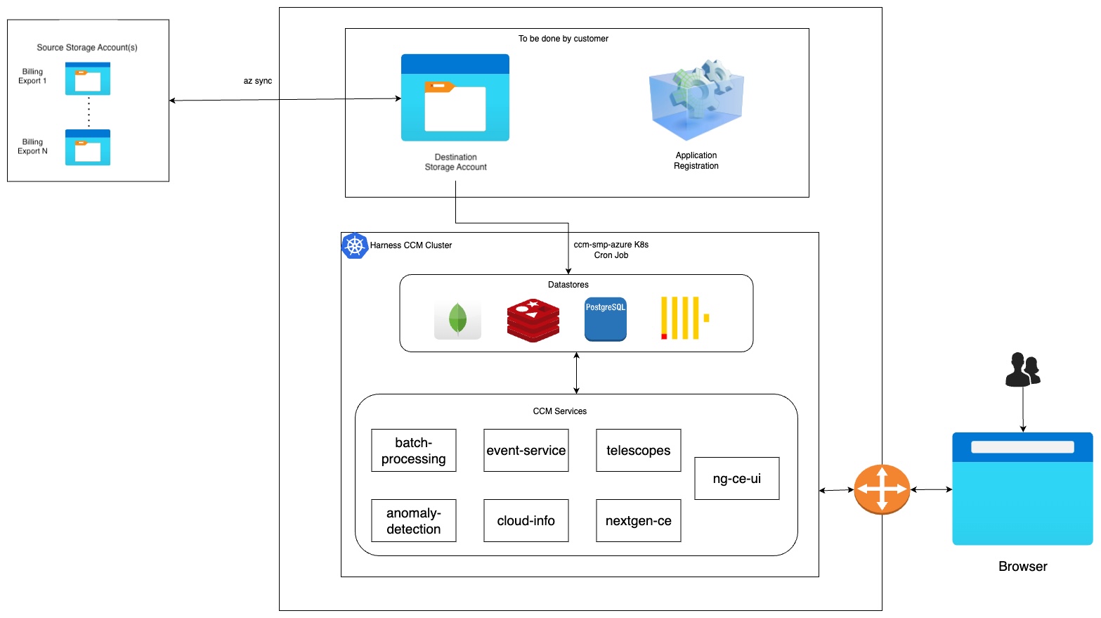 The goal of this particular documentation page is to set up an Azure Destination Storage Account and Application Registration, then configure an existing Harness Self-Managed Enterprise Edition deployment to utilize these components to act as a "staging area" for future Azure Billing Exports to be processed and made available for Harness CCM capabilities.