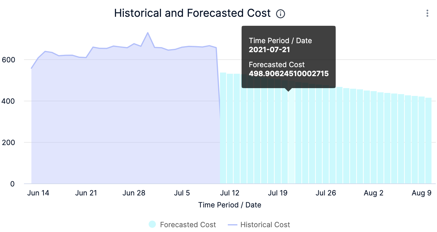 | Historical and Forecasted Cost | The historical and forecasted AWS cost. Forecasted cost is the prediction based on your historical cost data and it is predicted for the same future time period as your selected time range. | ![]() |