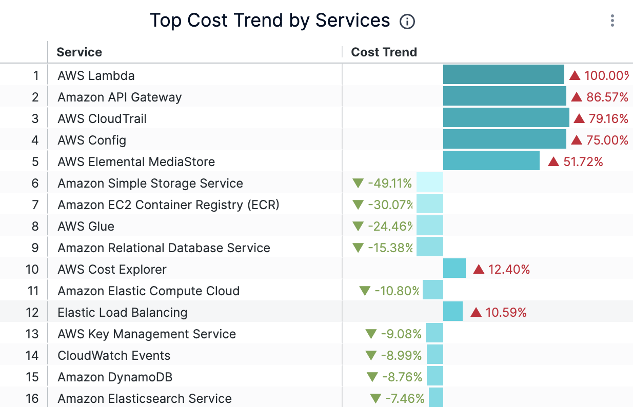 | Top Cost Trend by Services | The top AWS services by cost increase or decrease | ![]() |