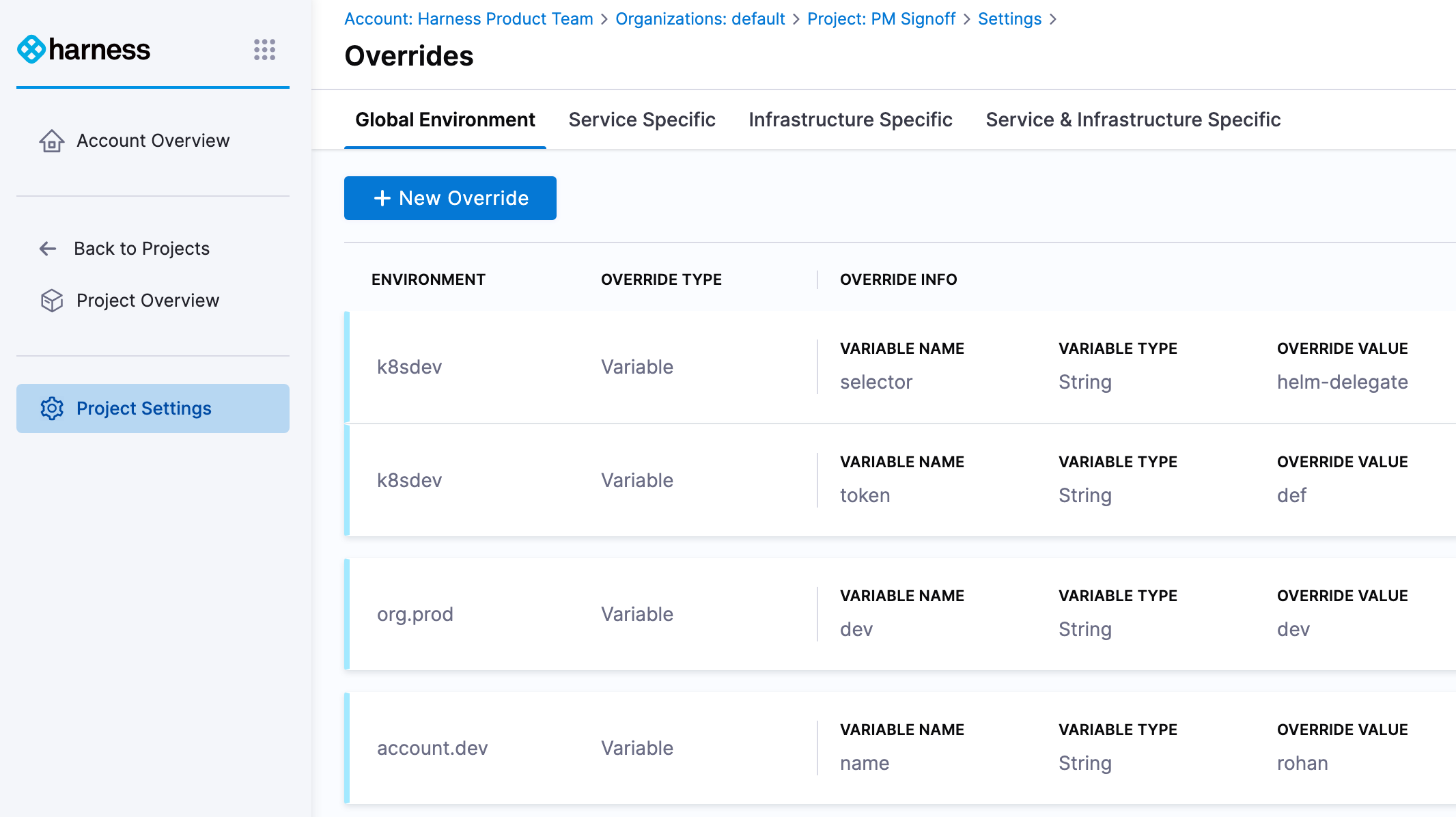 With overrides, you can define your service variable and overrides up front, and then at runtime, Harness will automatically compute the service variables, environment variables, secrets, and override files that need to be applied during a deployment.