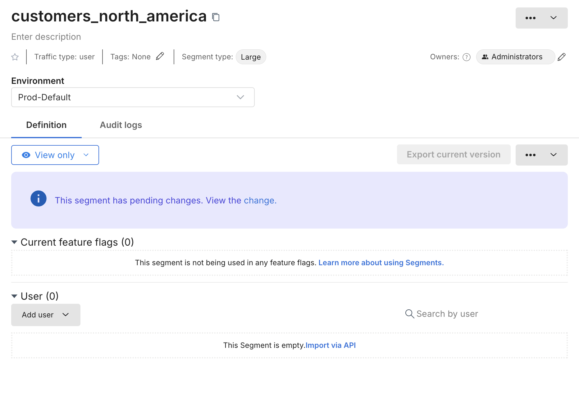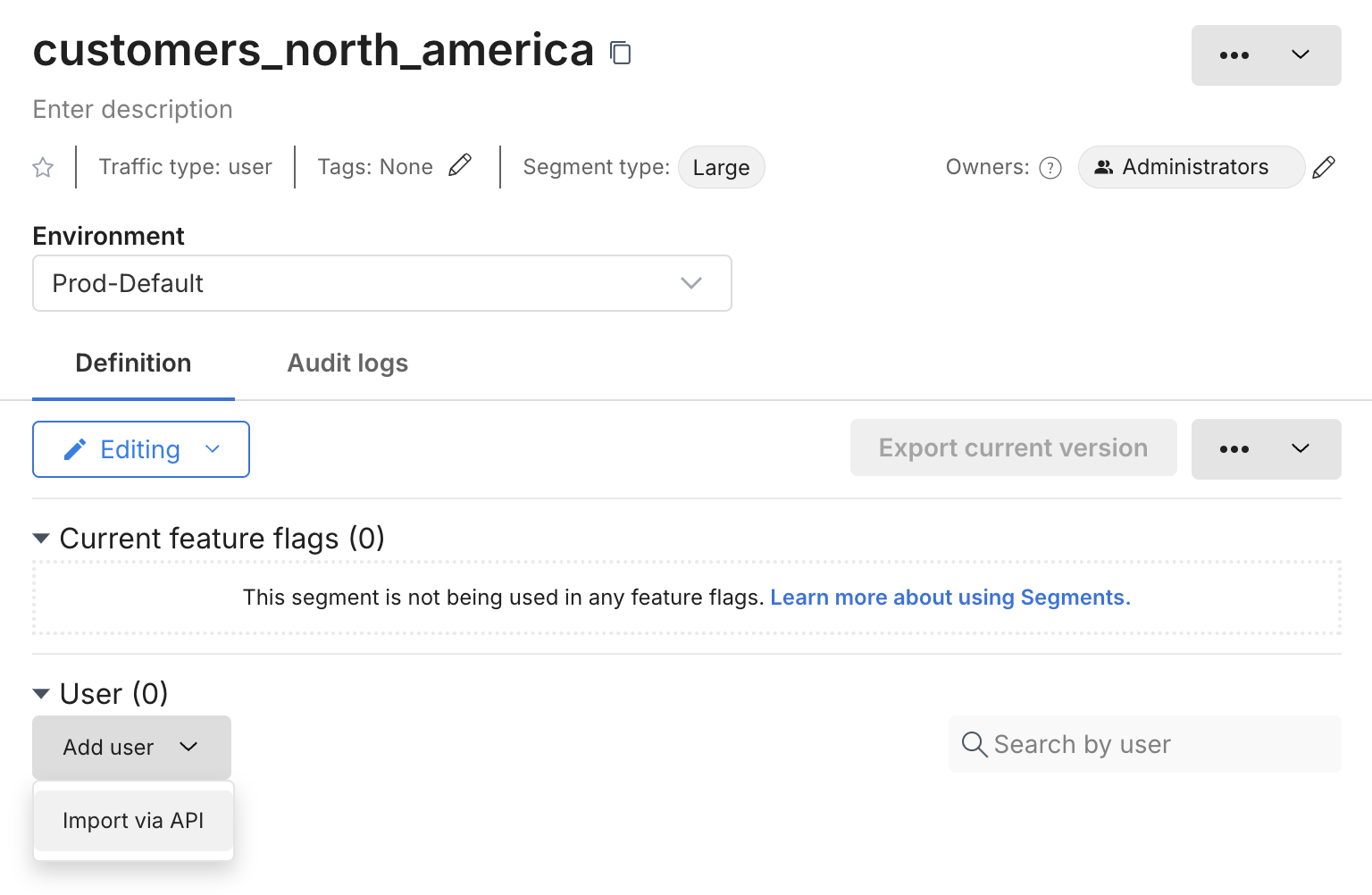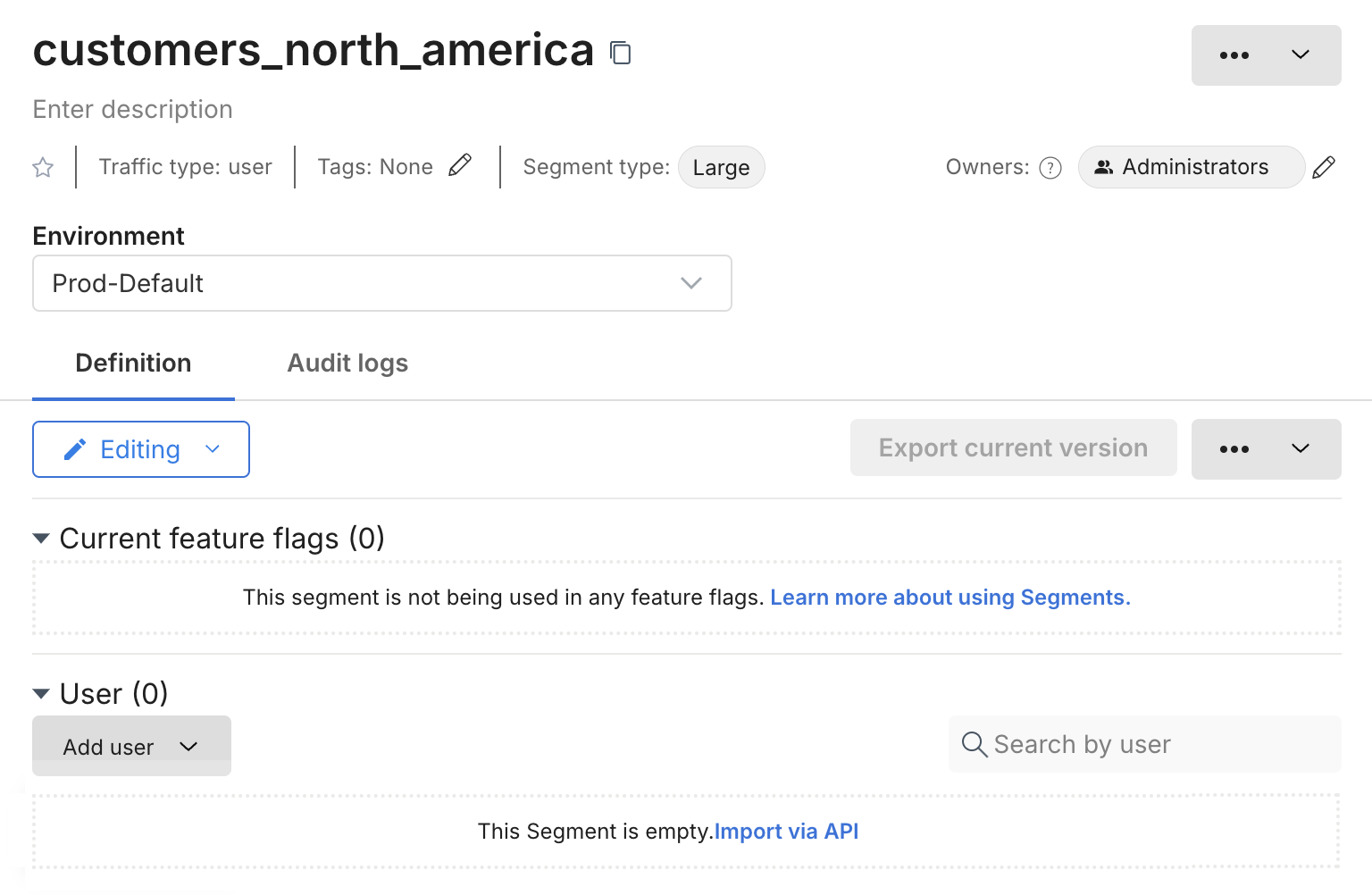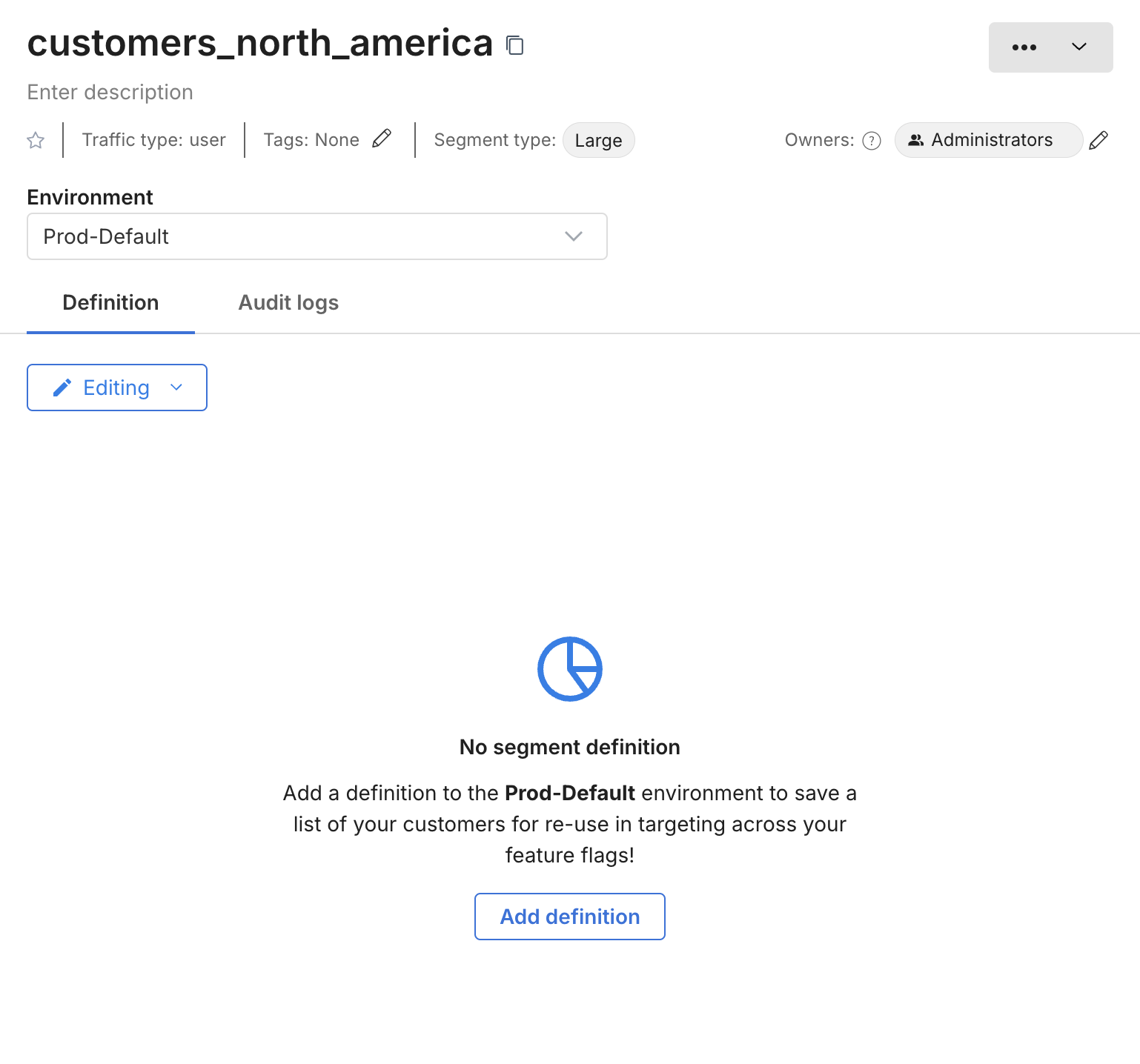 Click Add definition. A new blank definition for the segment (for the selected environment) appears.