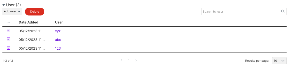 In the User section, click Add user.