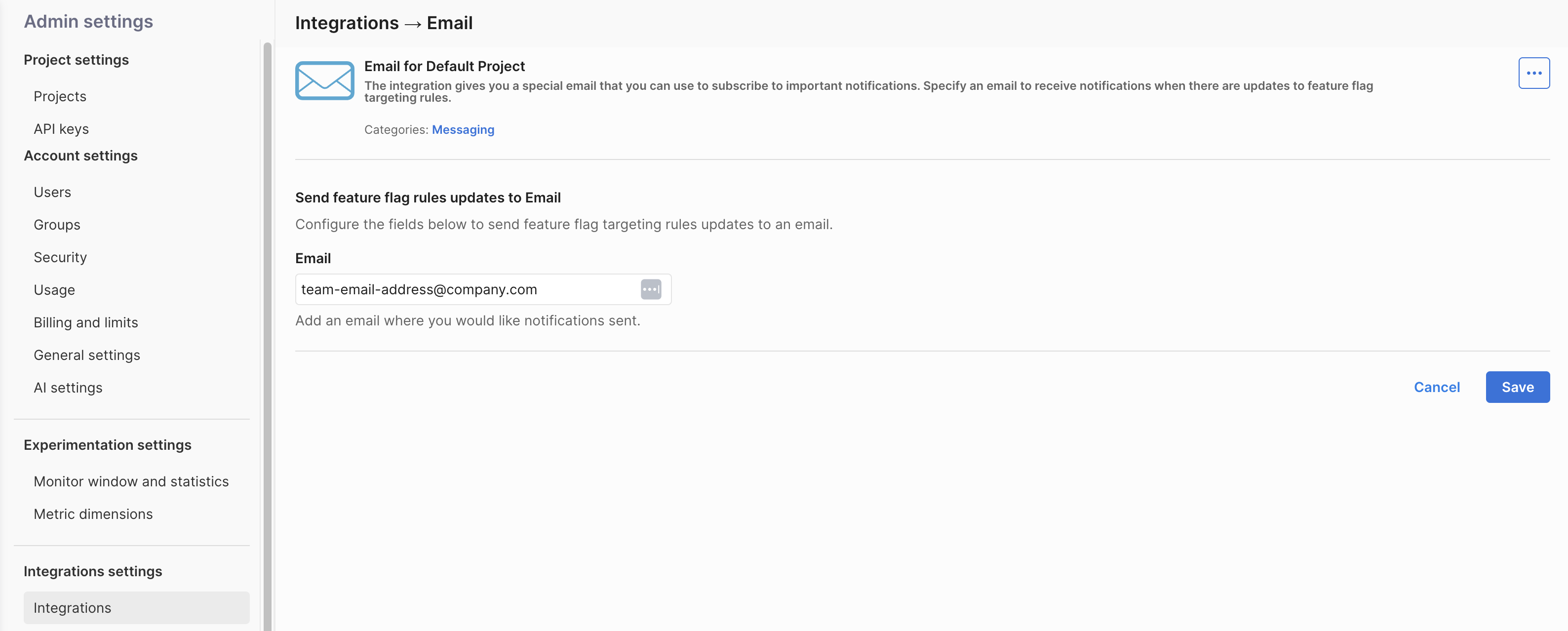With this integration, you can configure an email address to receive notifications whenever targeting rules are modified.