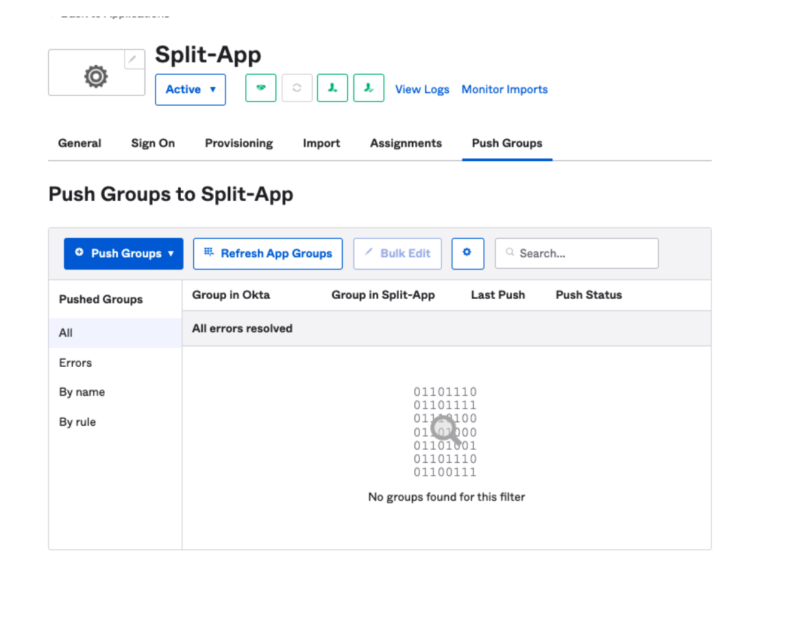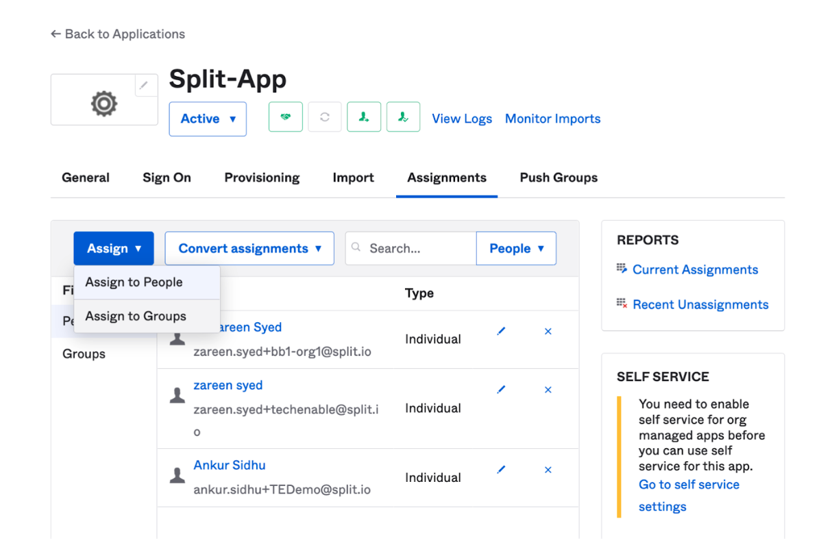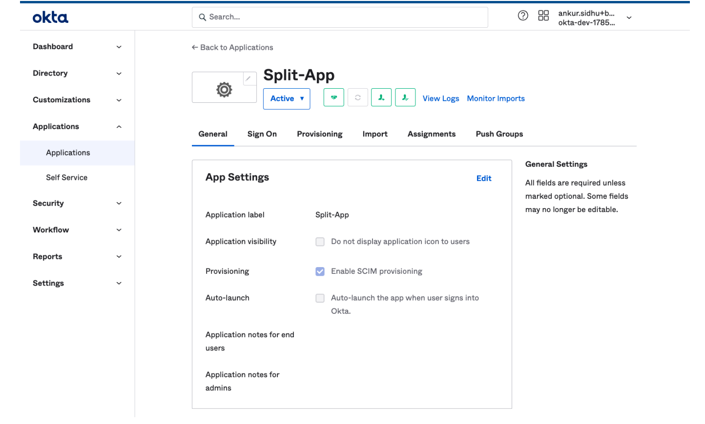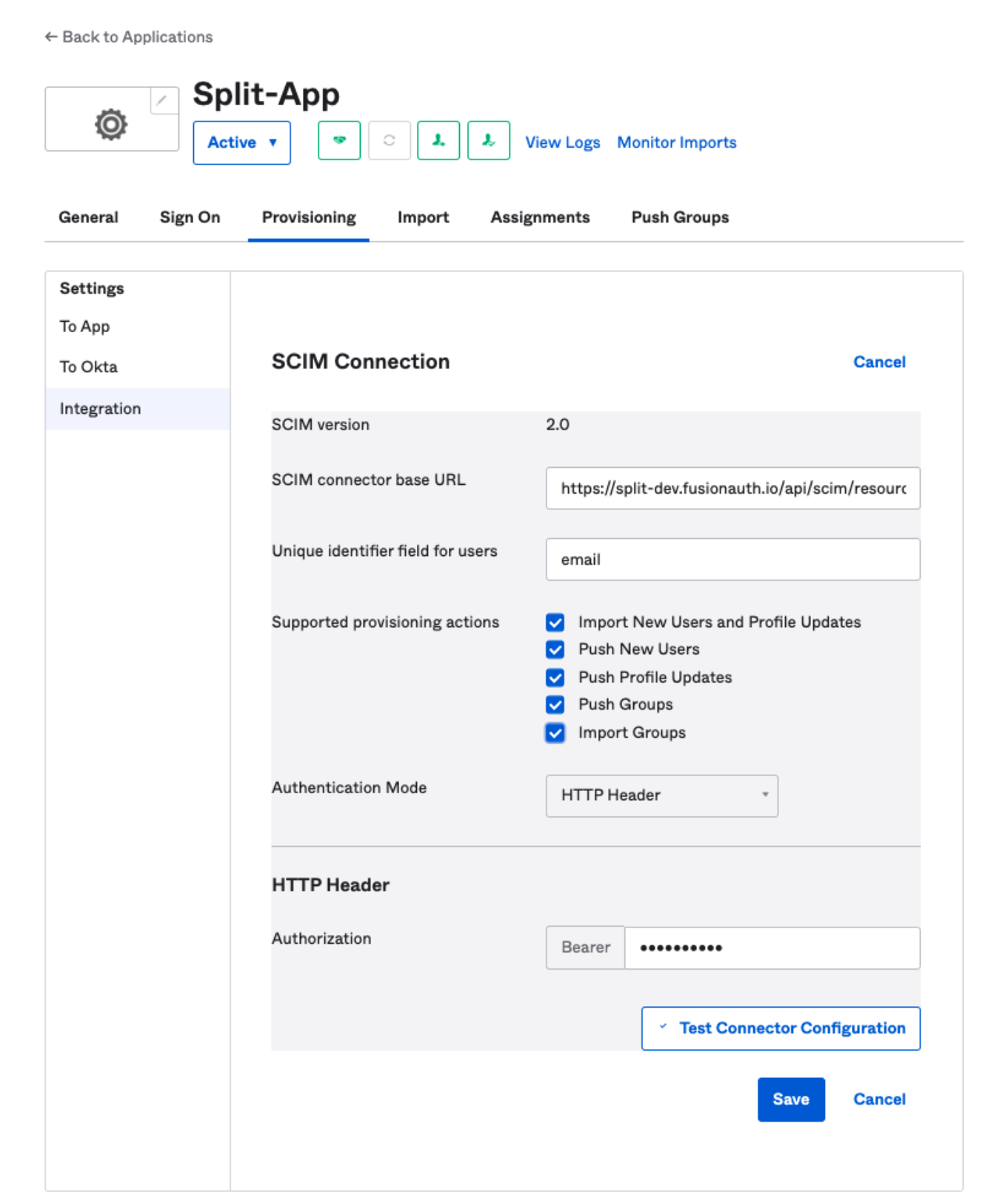 The SCIM connection setup between Okta and Split is now complete and we are ready to provision users and groups to Split.