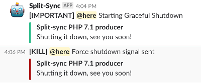 If you have configured a Slack channel and the Slack Webhook URL, an alert is sent to the channel when and initialization or shutdown is performed.