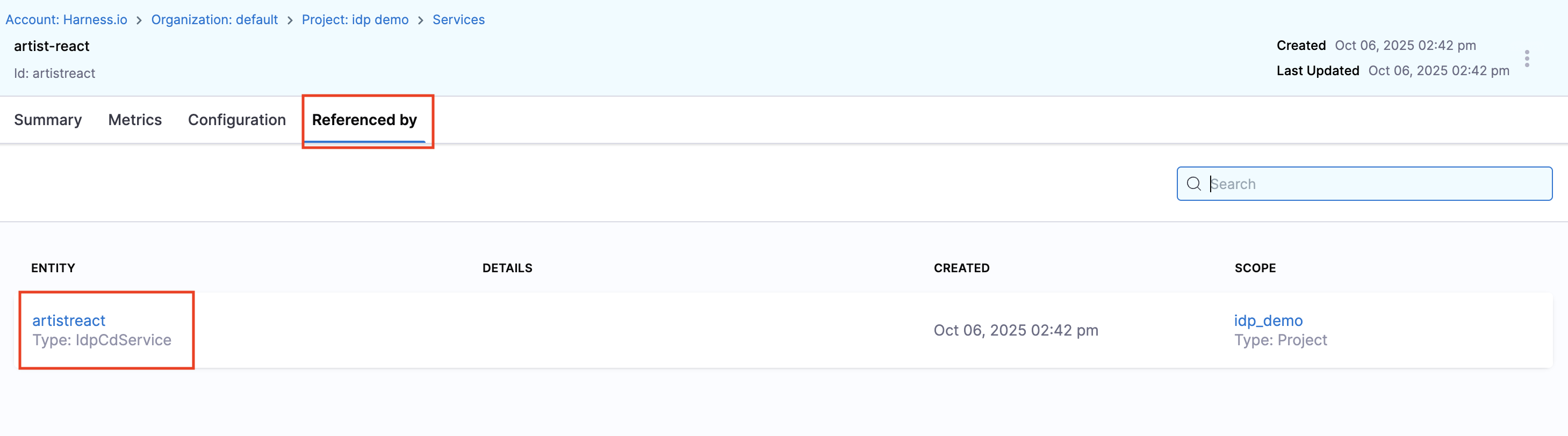IDP entities created: Each CD service appears in Catalog as an IDP entity with:
