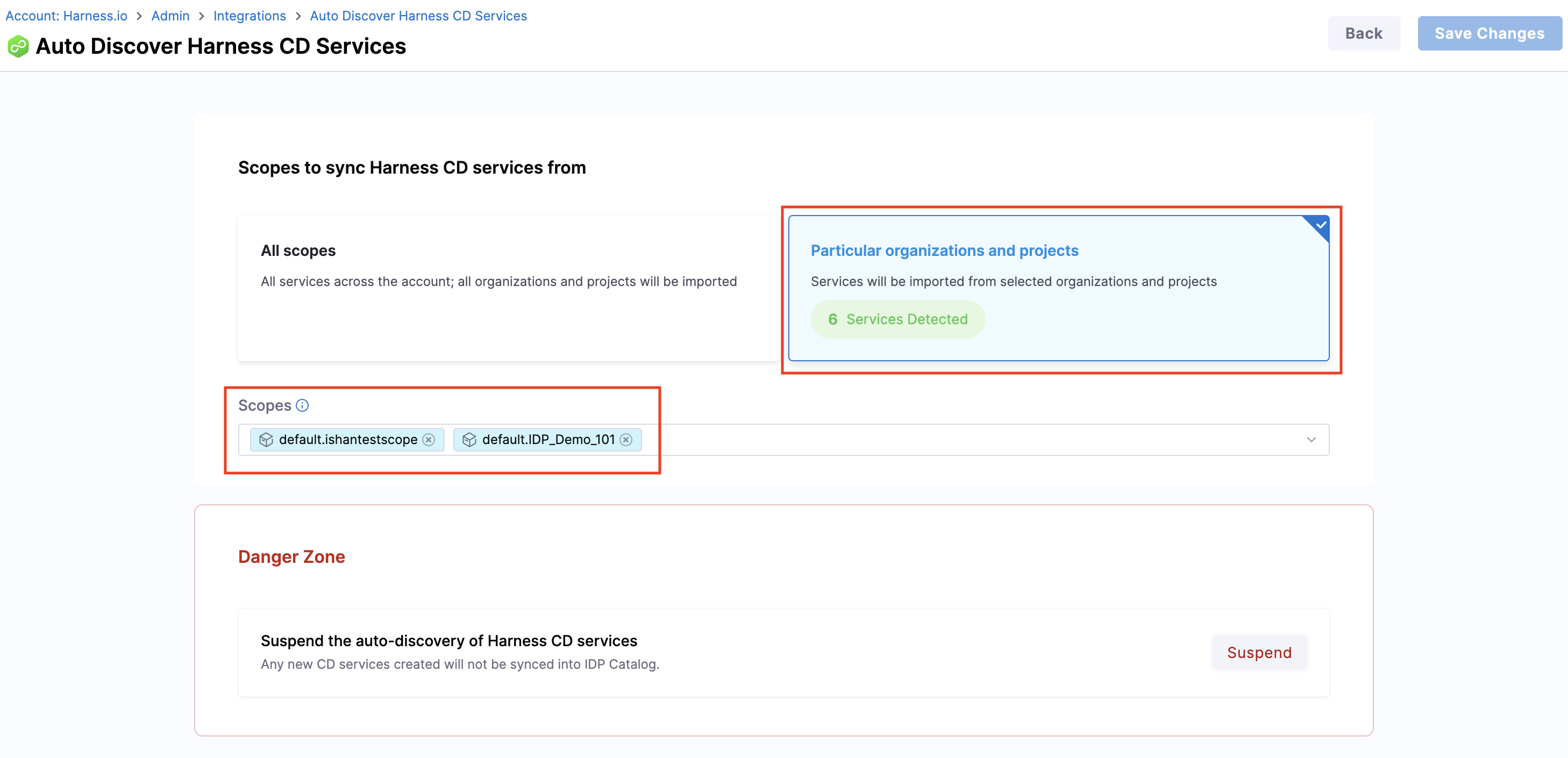 - All Scopes — Sync services across the entire account (all organizations and projects).