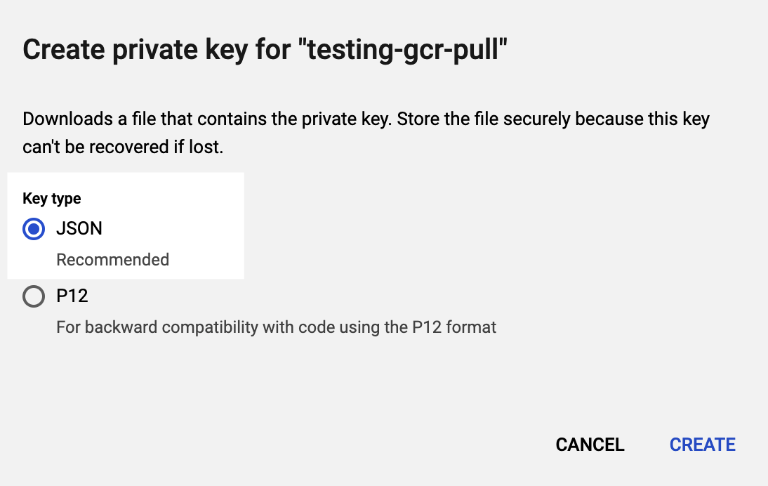 To obtain the Google Cloud's service account key file, go to the Google documentation on Creating and managing service account keys. JSON format is required.