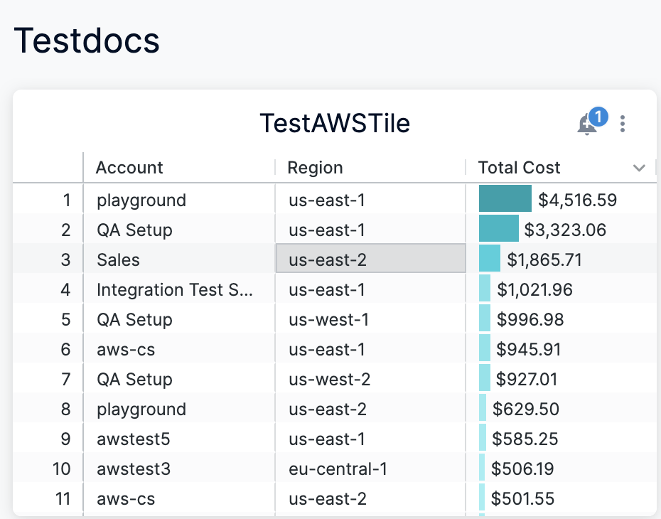 7. Hover over the bell icon that appears on the dashboard tile. A numeric indicator shows how many alerts you have created for that tile.