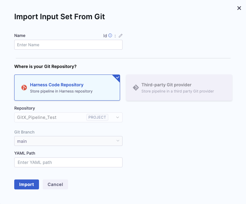 Enter the YAML Path from where you want to import the Input Set. Make sure that your YAML path starts with