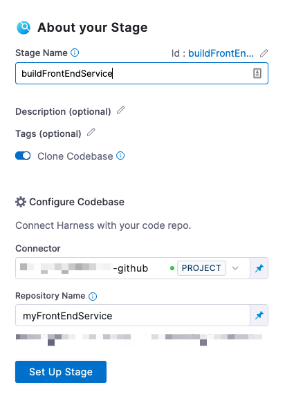 In About your Stage, select the Git repo with the codebase that you want the pipeline to build. Select Set Up Stage.