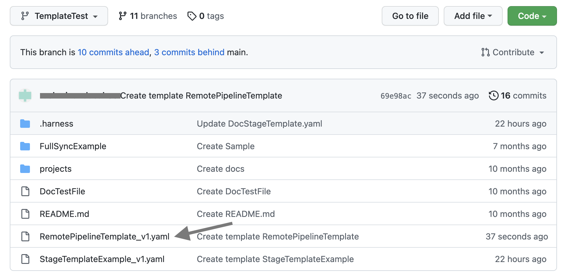 • The remote pipeline template and the pipeline exist in the same Git repo.