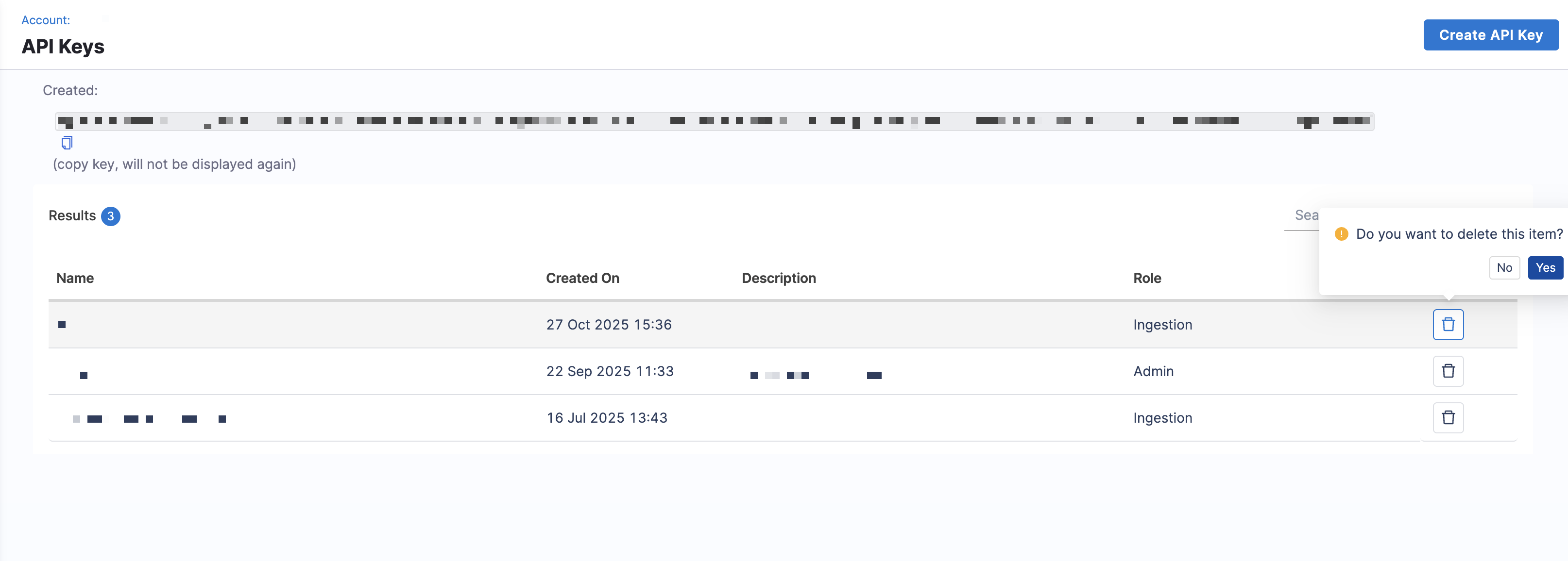 4. Select a role to assign to the API key (Admin or Ingestion).