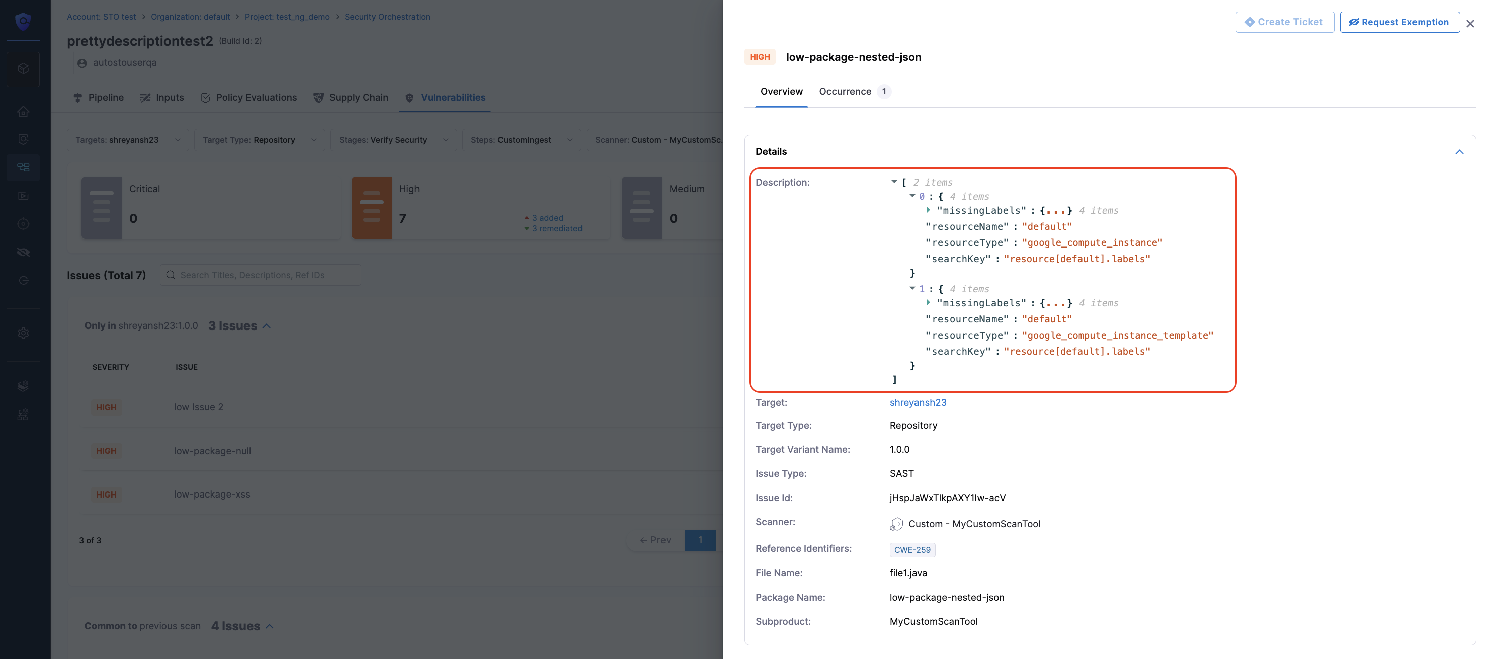- Fixed an issue where filtering by the Exemptions card in the Vulnerabilities tab displayed exempted issues incorrectly. Also resolved a problem where the Dashboard view showed data, but the CSV download returned empty results (STO-9640).